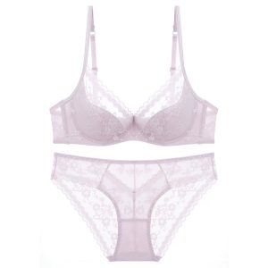 Sexy Sheer Mesh Embroidery Lace Bra and Panty Set – Underwire Ruffle Lingerie for Women, 3 Colors