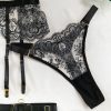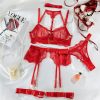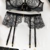 3-Piece Lace Lingerie Set with Garter Belt and Strappy Harness – Available in Red Black