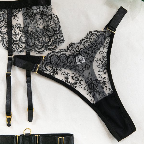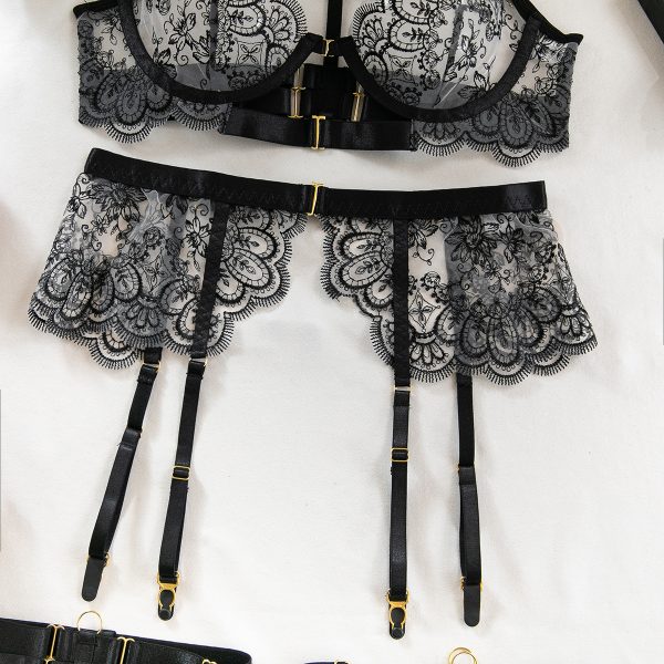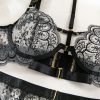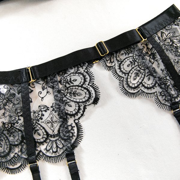 Complementing the bra is a sculpting garter belt engineered to accentuate your waist and streamline your lower torso. Its sleek construction pairs perfectly with the matching lace thong, which features the same luxurious lace trim and minimalist cut for a seamless look under clothing—or stunning impact when worn on its own. The adjustable garter straps are both functional and fashionable, allowing you to personalize the fit while adding a touch of vintage-inspired glamour.