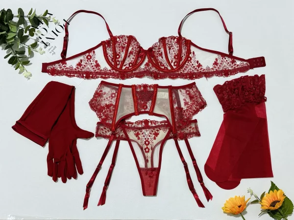 The pièce de résistance is the elegant garter belt, designed with four adjustable silicone-gripped straps that securely hold your favorite thigh-high stockings in place. The wide elastic waistband offers a snug yet comfortable fit, preventing roll-down while adding a vintage-inspired touch to your silhouette. Whether you’re dressing up for a romantic date night, a honeymoon getaway, or boudoir photography, this lingerie set delivers head-turning appeal with every movement.