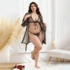 Elevate your intimate wardrobe with this luxurious 3-piece plus size lingerie set, a bold fusion of fierce fashion and feminine sophistication. Designed for curvy women who aren’t afraid to own their sensuality, this leopard print ensemble features a sheer mesh babydoll nightgown, a soft triangle bralette, and a matching G-string—all wrapped in an elegant open-front robe for a look that’s as empowering as it is alluring.