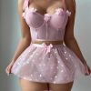 Elevate your intimate wardrobe with this breathtaking 3-piece sweet pink lingerie set, a harmonious blend of romance, elegance, and seductive charm. Designed for the modern woman who embraces her femininity with confidence, this ensemble features a floral cup bustier, an iridescent heart-mesh tulle skirt, and a matching garter thong—each piece meticulously crafted to flatter your silhouette and ignite your inner allure.