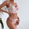 Floral Embroidered Lingerie Set in Sheer Mesh