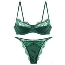 Lace Embroidered Satin Lingerie Set – Sexy Underwire Bra Thong Panty 2 Piece for Women