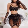 Lace Mesh 4-Piece Lingerie Set with Tulle Skirt – Bustier Bra, Garter Belt, Panty Gloves