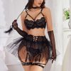 - Lace Mesh 4-Piece Lingerie Set...