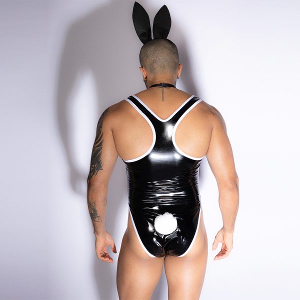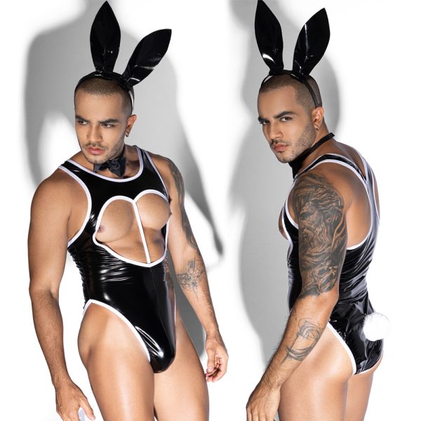 - Introduction:Step into irresistible fantasy with this Men’s Sexy Bunny Costume Bodysuit, designed for those who love bold fashion, playful seduction, and unforgettable role-play. Made from high-gloss PVC fabric, the suit contours the body beautifully while adding a seductive shine under any lighting.The deep chest cut-out frames the torso, emphasizing muscle lines and creating a strong visual impact. High-cut leg openings elongate the body for a stunning silhouette. The set includes essential accessories—bunny ears, bow-tie collar, and a fluffy white tail—turning a stylish bodysuit into a complete character outfit.Perfect for parties, club events, photoshoots, couples’ role-play, sexy performances or festival outfits, this bunny uniform is designed to command attention and spark imagination. Comfortable, stretchy, and irresistibly provocative, it brings confidence and charisma to any themed event.