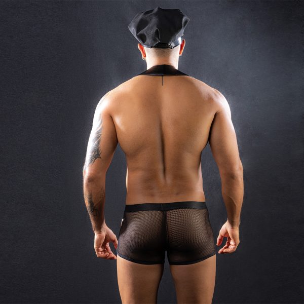 - Introduction:Turn up the heat with this bold and seductive men’s police costume lingerie set. Designed for confidence and edge, this outfit features a breathable black mesh boxer short, paired with an adjustable PU leather suspender harness that shapes your torso for a powerful look. The structured police cap and handcuff décor bring authentic detail to your role-play style, while the soft, stretchy mesh fabric ensures comfort and unrestricted movement.Perfect for themed parties, club nights, role-play, cosplay, and personal intimate moments, this sexy cop outfit delivers both style and attitude. Whether you’re performing, surprising a partner, or adding expression to your wardrobe, this set creates an irresistible powerful aesthetic.