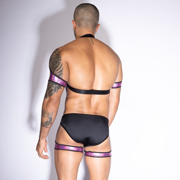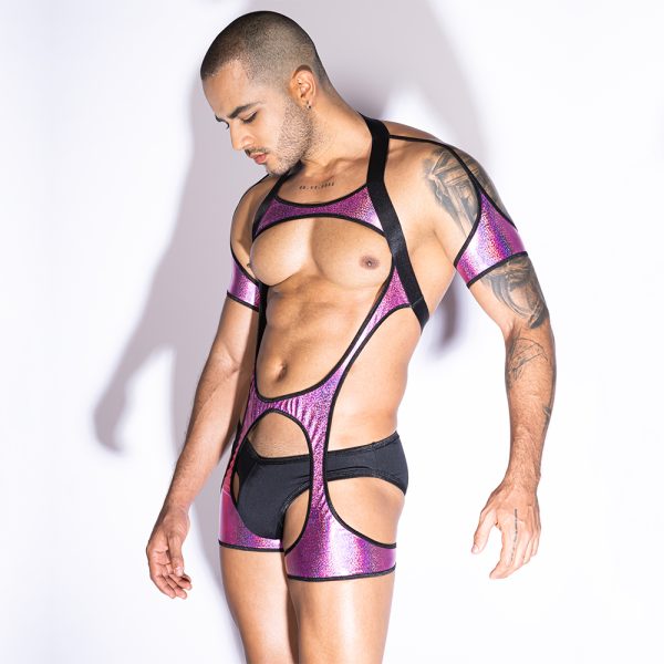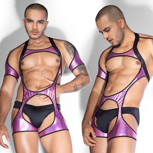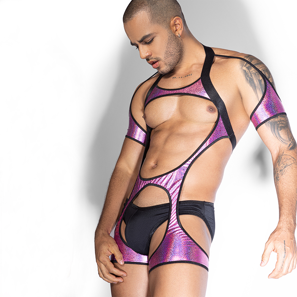 - Introduction:Unleash your boldest confidence with this Men’s Shiny Cut-Out Harness Bodysuit, designed for those who aren’t afraid to make a statement. This striking outfit combines metallic shimmer with an erotic cut-out pattern that highlights your chest, abs, hips, and thighs. The multi-strap harness construction shapes and enhances your torso, giving a sculpted and dominant appearance.Made from stretchy high-gloss fabric, it offers maximum comfort while hugging every contour of your body. Whether you’re performing, partying, or playing out a fantasy, this piece delivers dramatic visual impact. Perfect for club nights, raves, pride celebrations, exotic dancing, or intimate roleplay, this bodysuit transforms your look into something unforgettable.Step into the spotlight—this unique metallic bodysuit ensures you’ll turn heads and feel unstoppable.