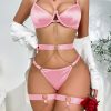 Pink Velvet Strappy Lingerie Set with Gold Chain Detail – Bra, Panty Leg Harness