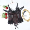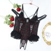 Sultry black mesh meets bold red bows in this flattering teddy, designed to celebrate curves. Sheer elegance with playful frills, delicate lace-up detailing, and a hint of daring allure—perfect for feeling confident, sexy, and utterly unforgettable.
