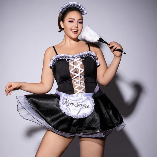 Designed for those who celebrate their curves, this plus-size maid costume blends flirtation with comfort in every detail. The stretchy, soft material ensures a flattering silhouette that moves with you, whether you’re at a cosplay event, a themed party, or enjoying an intimate evening at home. Thoughtful touches like adjustable straps and a lace-up front let you customize your fit and reveal just the right amount of allure. With its iconic apron, chic headpiece, and coordinated accents, this outfit transforms fantasy into reality—offering unforgettable charm and bold self-expression in one irresistible package.