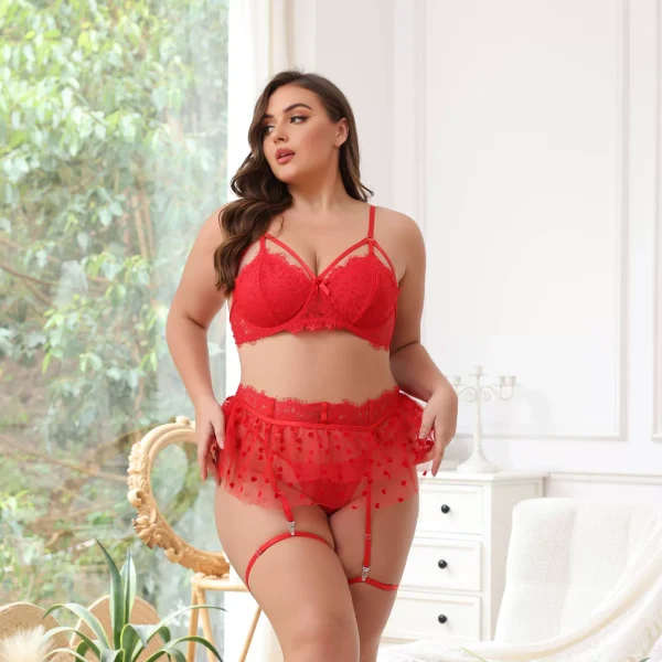 Elevate your intimate moments with this exquisite plus size lace bra and panty lingerie set, featuring a sheer heart mesh skirt that blends romance, elegance, and confidence into one breathtaking babydoll ensemble. Designed specifically for curvier figures, this two-piece set celebrates every curve with thoughtful tailoring, luxurious fabrics, and delicate details that enhance both comfort and allure.