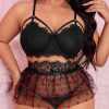 Plus Size Lace Bra Panty Lingerie Set with Sheer Heart Mesh Skirt – Romantic Two-Piece Babydoll for Women