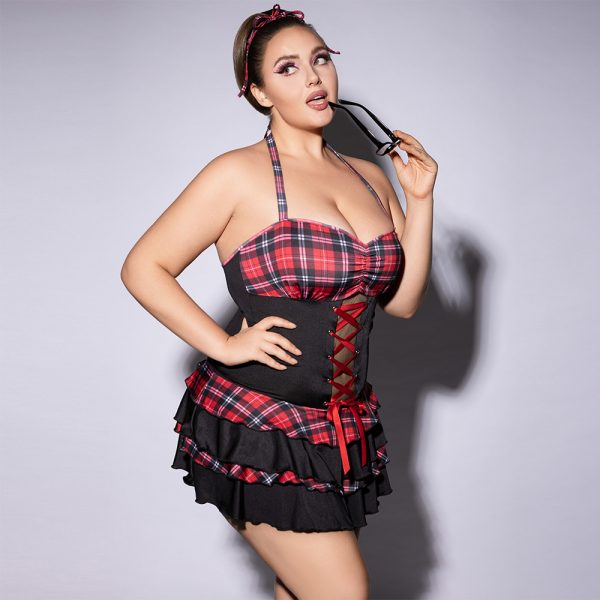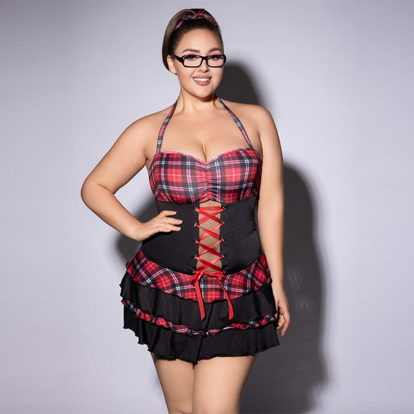 2. Introduction:Turn up the heat with this Plus Size Sexy Schoolgirl Costume, designed to bring confidence, charm, and playful fantasy to your wardrobe. Made from glossy PU leather, the top and pleated mini skirt create a striking and seductive silhouette that hugs your curves in all the right places. The red plaid accents deliver the classic schoolgirl aesthetic, adding a fun and flirtatious touch to your roleplay experience.Whether you’re dressing up for a themed party, seductive cosplay, or a private moment with your partner, this plus-size uniform offers a comfortable stretch fit and eye-catching visual appeal. Complete, stylish, and crafted for curvy figures—this is the perfect outfit to express your bold and playful side.