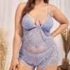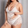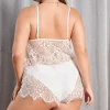 Plus Size Sheer Floral Lace Lingerie Set – Strappy Cami Shorts Pajama Set