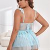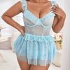 Ruffle Trim Sheer Mesh Babydoll Lingerie with Underwire & Lace – Plus Size Romantic Nightdress for Women