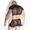 - Includes a cropped mesh T-shirt and matching mesh boxer shorts, offering a complete and coordinated sexy outfit.