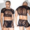 - Introduction:Turn up the heat with this bold and ultra-sexy men’s mesh lingerie set, designed for those who love confidence, freedom, and irresistible style. This two-piece outfit features ashort-sleeve mesh crop top and matching see-through boxer shorts, created with a unique geometric fishnet pattern that highlights the male physique.Made from high-stretch, soft and breathable fabric, the mesh set ensures maximum comfort while delivering a striking, seductive look. Ideal for bedroom fun, club nights, cosplay, dance performances, festivals, and special moments where you want to impress and stand out.Whether you’re exploring playful roleplay or elevating your private wardrobe, this lingerie set offers the perfect mix of boldness, comfort, and modern erotic fashion.