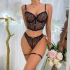 Sexy Black Sheer Lace Lingerie Set with Rose Embroidery
