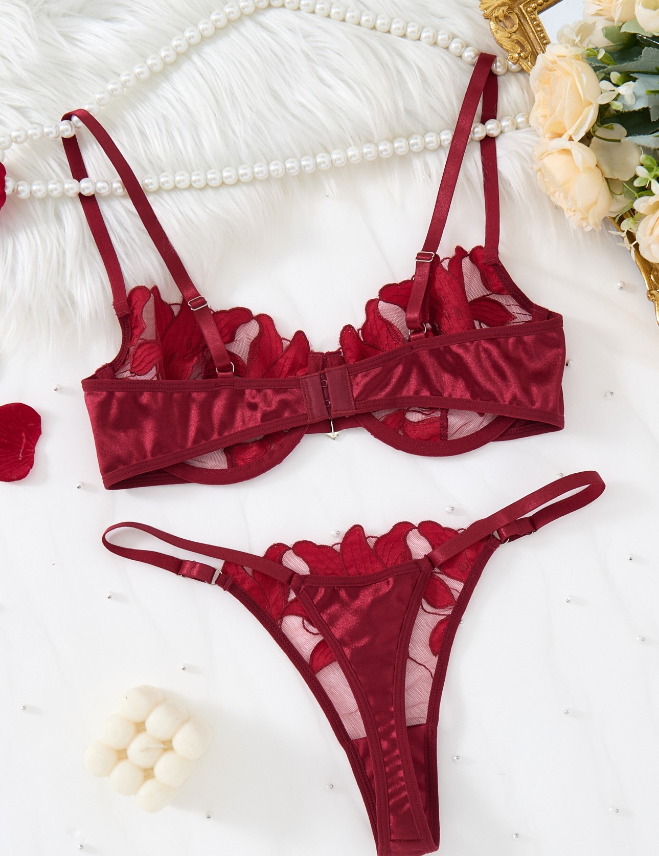 The matching sheer thong completes the set with bold elegance. Designed with the same high-quality embroidered mesh, it features daring cut-out panels and floral appliqués that highlight your silhouette with playful allure. The low-rise waistband sits smoothly against the skin, minimizing visible lines under clothing and offering a seamless look. Lightweight and virtually undetectable, this thong ensures both visual appeal and all-day comfort.