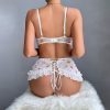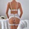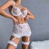 Sexy Floral Lace 3-Piece Lingerie Set with Bra, Garter Skirt Stockings – Sheer White Embroidered Babydoll Outfit