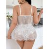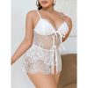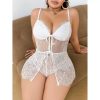 Sexy Lace Lingerie Set for Women – Sheer White Babydoll with Adjustable Straps, Floral Embroidery Lace-Up Front for Bedroom Special Occasions