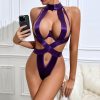 Sexy Satin Strappy Bodysuit Lingerie for Women – Cut Out One Piece Teddy with Halter Neck, Crisscross Straps & Open Back – Available in Blue, Green, Purple, Red
