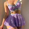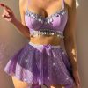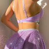 Sparkling Sequin Lingerie Set – Shiny Purple Bralette Skirt with Crystal Tassels