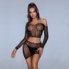 - This 2-piece fishnet lingerie set transcends traditional boundaries, offering versatile styling options for a range of occasions. Wear it as-is for a steamy boudoir session, layer it under a blazer or leather jacket for a night-out ensemble, or pair it with thigh-high boots for an unforgettable costume look. The off-shoulder crop top and mini skirt combo flatters all body types and adds instant edge to any outfit. With its blend of transparency, texture, and tailored fit, this 2-piece fishnet lingerie is more than just intimate wear—it’s a fashion-forward piece that empowers you to express your boldest self wherever you go.