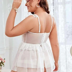 Ruffle Trim Sheer Mesh Babydoll Lingerie with Underwire & Lace – Plus Size Romantic Nightdress for Women