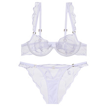 Sexy Sheer Mesh Embroidery Lace Bra and Panty Set – Underwire Ruffle Lingerie for Women, 3 Colors